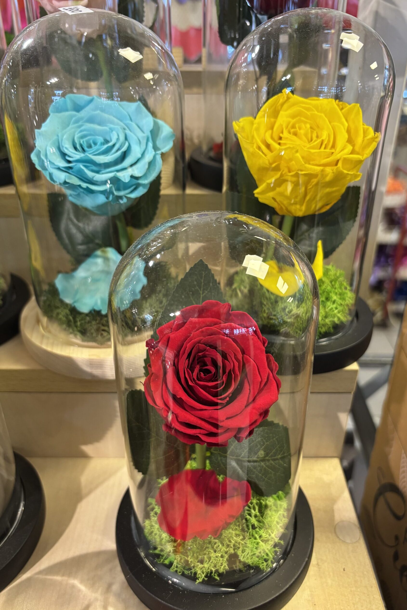 Dekorativna ruža postavljena pod staklenim zvonom, namenjena cvećarama i dekoraterima za Valentine’s aranžmane, poklon dekoraciju i premium prezentaciju proizvoda.