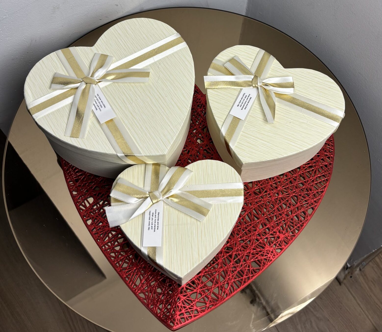 Set 3u1 kutija u obliku srca, namenjen cvećarama i dekoraterima koji žele elegantno, neutralno i luksuzno pakovanje za Valentine’s aranžmane.